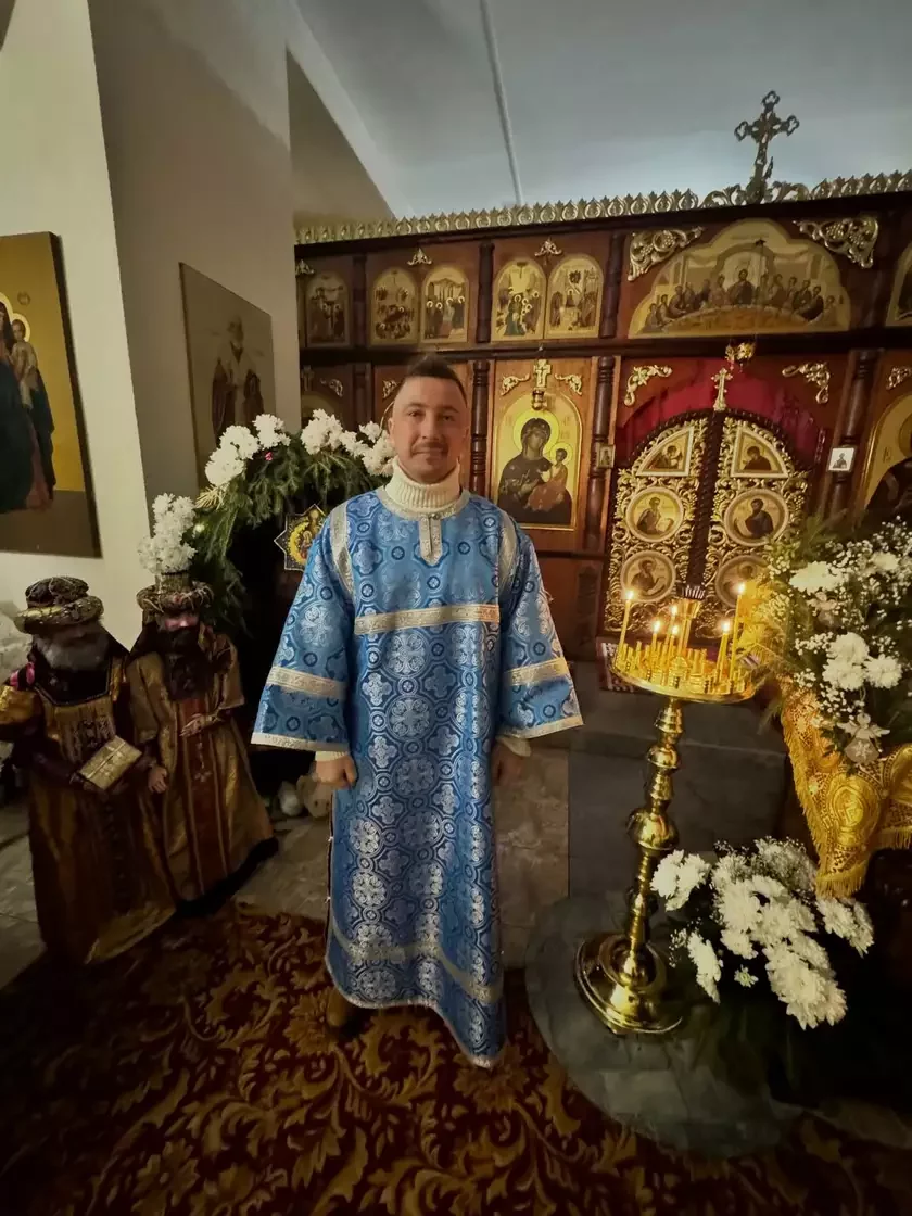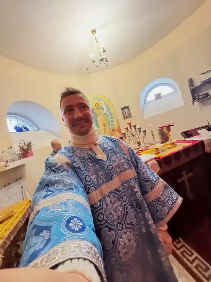 Vital Karpanaŭ u ałtary carkvy. Fota: Threads