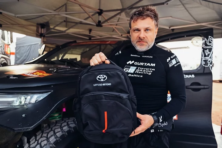 Za styrnom spartyŭnaha balida Toyota Hilux pad numaram 216 znachodzicca lehienda litoŭskaha aŭtasportu Bieniadziktas Vanahas, dla jakoha heta ŭžo 14‑y «Dakar». Jaho šturmanam staŭ daśviedčany Ajvidas Palukienas.