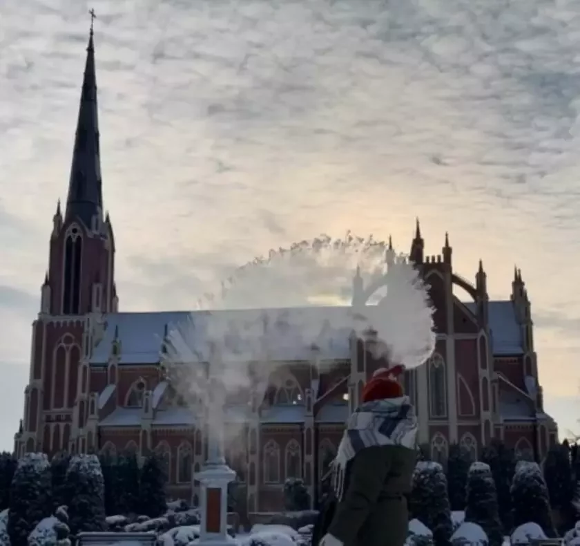 U maroznyja dni možna samastojna pravieryć adnu cikavuju i paradaksalnuju źjavu — haračaja vada zamiarzaje chutčej za chałodnuju. Heta tak zvany efiekt Mpiemby (Mpemba-effect), adznačaje telehram-kanał nadvorie, a vydańnie «Lusterka» znajšło ŭ siecivie prykład, jak biełaruska praktyčna jaho demanstruje na fonie architekturnaha pomnika.