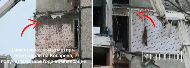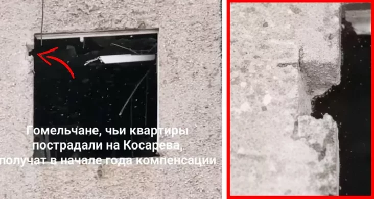 19 śniežnia Onlíner apublikavaŭ videa z Homiela, na jakim bačna, što vyrvanaja tarcovaja plita doma była časova zamacavanaja avaryjnaj mietaličnaj ściažkaj, kab praduchilić dalejšaje abvalvańnie.