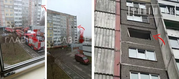 Možna razhledzieć dastupnyja fota i videa epicentra vybuchu. Isnuje adzinaje videa zdymkaŭ kuchni na 7‑m paviersie. Heta videa MNS. Na im kidajecca ŭ vočy nie paškodžanaja kuchonnaja mebla i vyniesienaja šyrokaja akonnaja šyba, śladoŭ sažy pamiaškańnie nie maje.