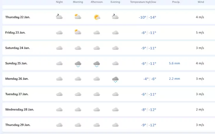 Nadvorje ŭ Minsku na nastupnyja dni pavodle yr.no