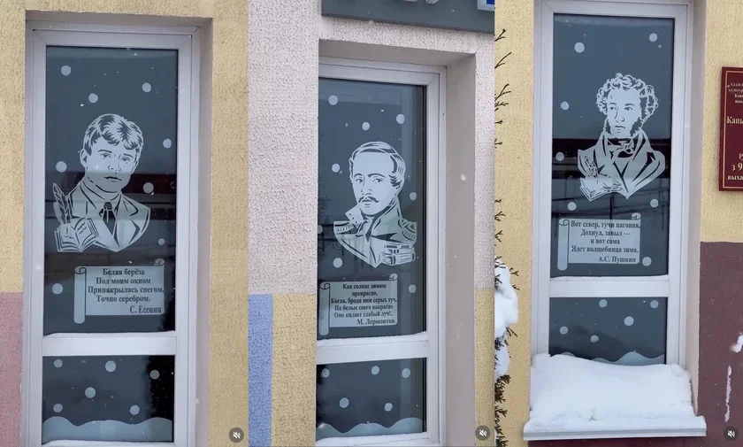 Vokny Kapylskaj dziciačaj biblijateki ŭpryhožyli partretami paetaŭ i ich cytatami. Stvaralniki ekspazicyi abrali dla hetaha Alaksandra Puškina, Siarhieja Jasienina i Michaiła Lermantava.