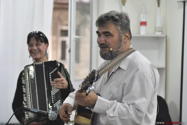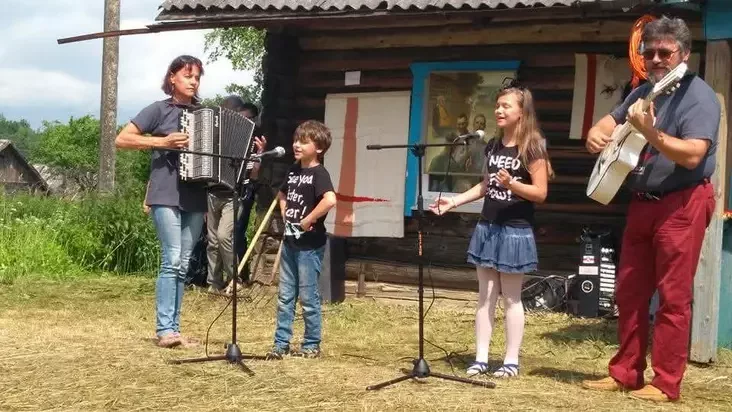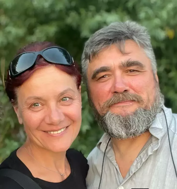 — Siamja ŭ vas cudoŭnaja! Ja ŭ vialikim zachapleńni ad vašaj dački Justyny i jaje razvažańniaŭ. I ad vašaj žonki Taćciany, jakaja, moža, navat vyratavała vas u 2020-m, adpraviŭšy na radzimu dzieda ŭ Adesu. Dy pa biełaruskich vioskach z vami padarožničała, kali vy źbirali historyja pa viaskovych chatach. Jašče i na bajanie razam na scenie hraje. Nie žančyna — cud! Vy paznajomilisia ŭ internecie?