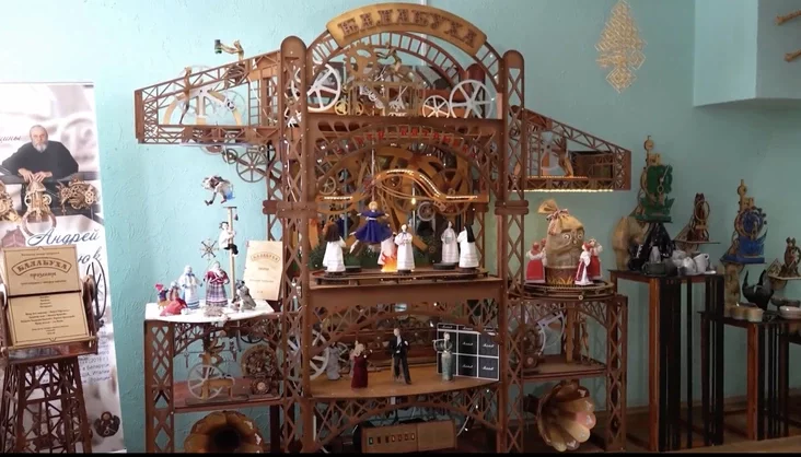 Biełaruski raźbiar pa drevie Andrej Martyniuk žyvie ŭ vioscy Stańkava Dziaržynskaha rajona i stvaraje ŭnikalnyja miechaničnyja hadzińniki, całkam zroblenyja z dreva — biez anivodnaj mietaličnaj detali, piša Sputnik.