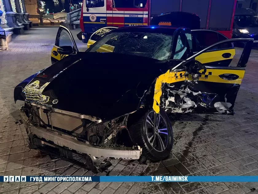 Kiroŭca Mercedes-Benz AMG GT 43, ruchajučysia pa praśpiekcie Niezaležnaści, vyjechaŭ na skryžavańnie z vulicaj Lenina na čyrvony sihnał śviatłafora i sutyknuŭsia z Mercedes-Benz 200.