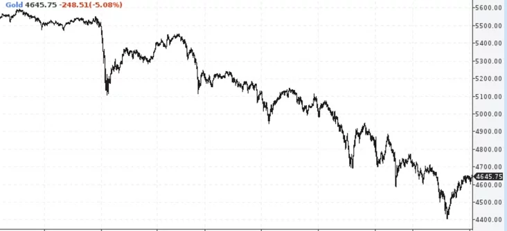 Siońnia cana na zołata za uncyju apuskałasia navat da 4400 dalaraŭ, ale potym krychu adyhrała i ciapier tarhujecca pa $4645 za uncyju.