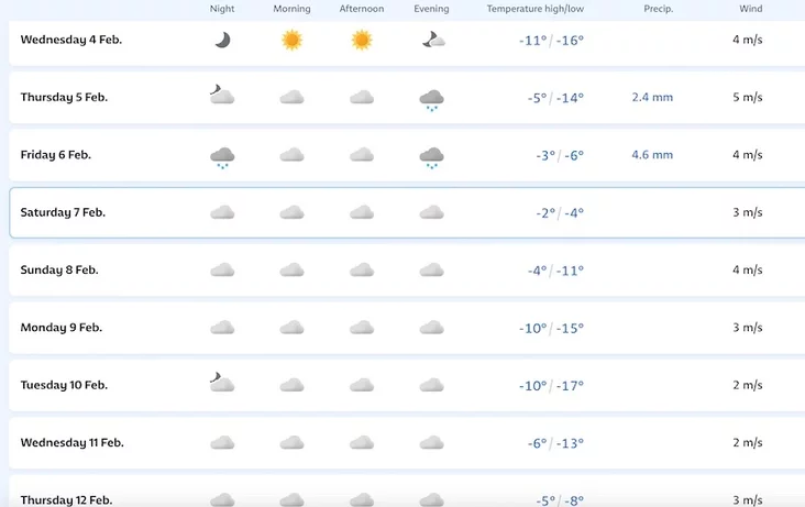 Nadvorje ŭ Minsku na nastupnyja dni pavodle yr.no