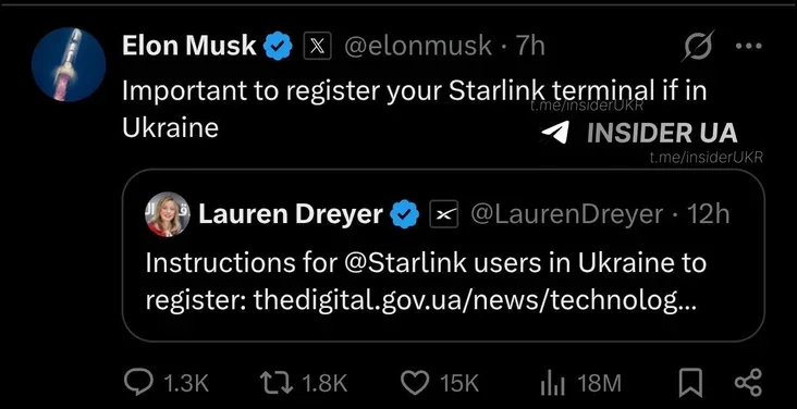 «Błakiroŭka Starlink: <> Iłan Mask absłuhoŭvaje intaresy USU. Piendos paćvierdziŭ u sacsietcy Ch, što dla pracy terminałaŭ Starlink va Ukrainie treba rehistravać abstalavańnie va ŭkrainskich dziaržorhanach <>. Hetym moža tłumačycca masavy zboj terminałaŭ <> na froncie. Takim sposabam «hienij» <> u čarhovy raz akazaŭ dapamohu USU ŭ zabojstvie našych sałdat. Sprava ŭ tym, što pry adsutnaści alternatyŭ US Rasii vykarystoŭvajuć šeryja «Starlinki» dla arhanizacyi suviazi na froncie… <> Ciapier abo pa-staromu, abo niešta svajo ekstranna vydumlać». «Dva majora»