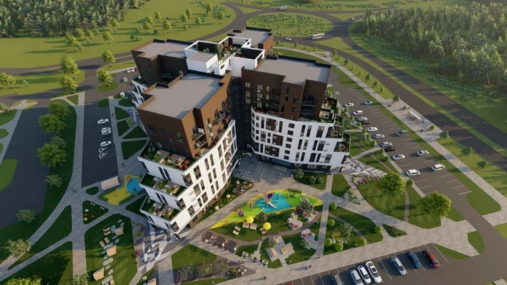 Dom budujuć u novym mikrarajonie «Viasieńni», jaki mieścicca niepadalok ad centra horada, raki Nioman i lesaparka Pyški. Što ŭ im takoha, aproč vyhadnaha miesca?