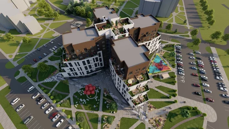 Dom na 178 kvater u samaj vysokaj častcy budzie mieć 10 pavierchaŭ. Častka apartamientaŭ budzie z terasami, jość i dvuchuzroŭnievyja kvatery. Dom składajecca ź piaci siekcyj — adnoj u siaredzinie i čatyroch pa bakach, — tamu źvierchu jon nahadvaje čatyrochpialostkavuju kvietku.