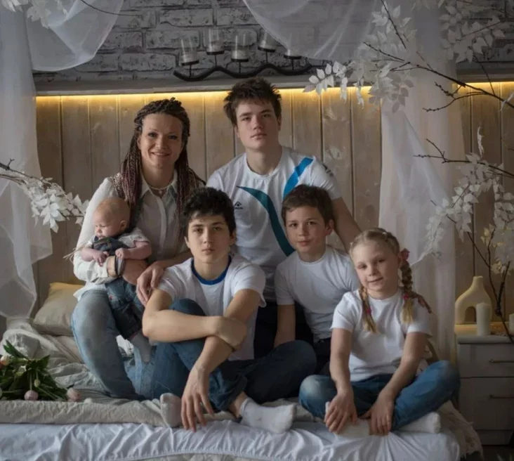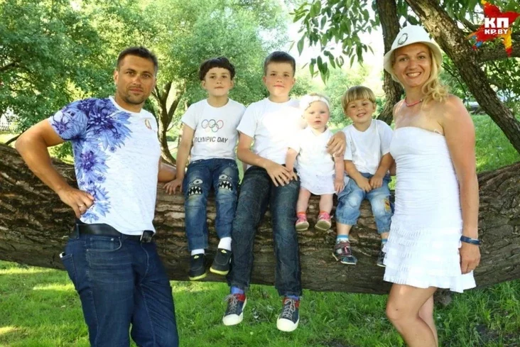Asol Śliviec ź dziećmi i novym mužam Alaksandram. Fota: sacsietki
