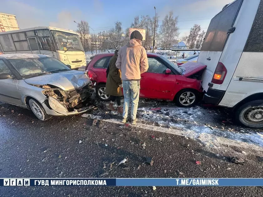 37‑hadovaja kiroŭca Toyota, ruchajučysia pa praśpiekcie Žukava pablizu doma №119 pa vulicy Hrušaŭskaj, z-za nievykanańnia biaśpiečnaj dystancyi sutyknułasia z Audi.