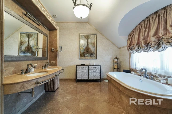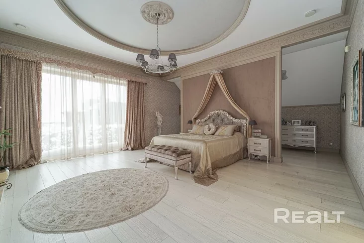 U hałoŭnym budynku (bo jość na terytoryi i haściavy domik z kuchniaj, kaminnaj zonaj, spalniaj i sanvuzłom) praduhledžana try spalni, kožnaja ź jakich maje svoj vanny pakoj.