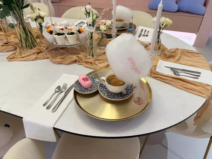 Ustanova znachodzicca na vulicy Niamiha — na druhim paviersie kramy «Bielita Viteks». Interjer kaviarni vykanany ŭ ružovych adcieńniach i navat desierty padajucca ŭ takoj ža koleravaj hamie.