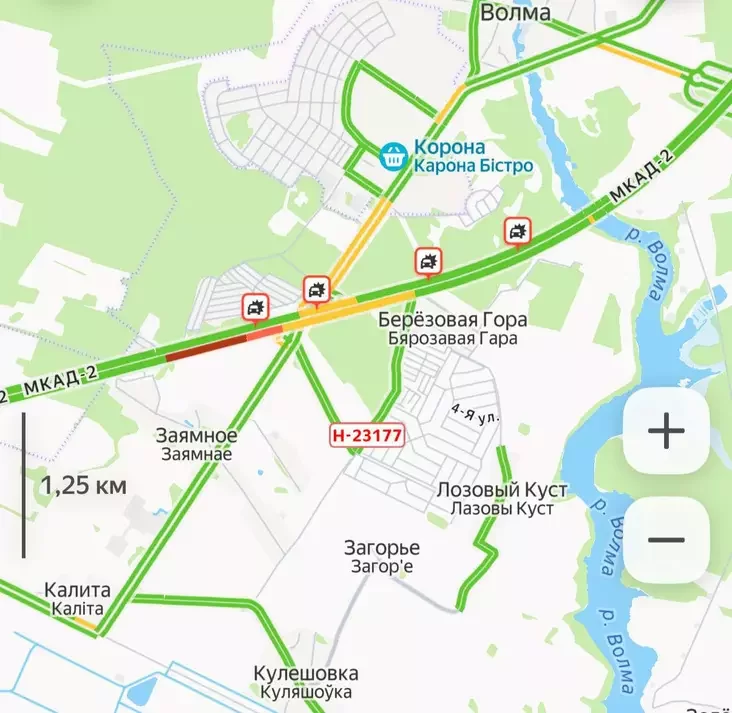 U bolšaj stupieni ŭskładnienaja situacyja na aŭtadarozie M-1 ŭ Smalavickim rajonie, dzie ŭ napramku Barysava na 374‑375 km zafiksavana niekalki darožna-transpartnych zdareńniaŭ.