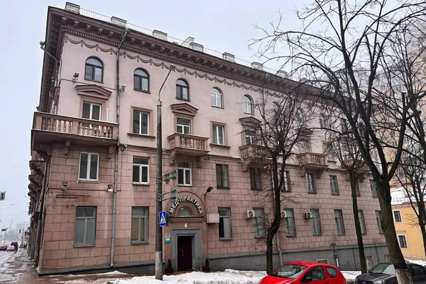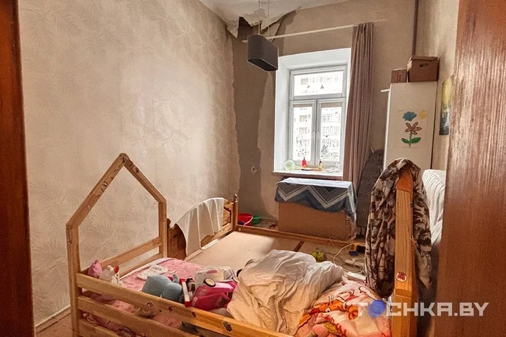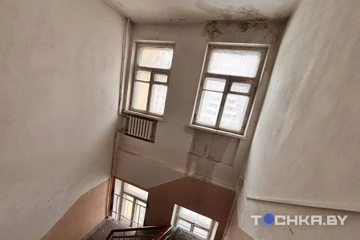 Staradaŭni dom u samym centry Minska nasuprać Vialikaha teatra. Tut svajo «Lebiadzinaje voziera». Vadaspady lijucca z dachu. Niekatoryja žychary śpiać z tazikami, a chtości i zusim pierajechaŭ — u syraści niemahčyma znachodzicca, piša «Točka».