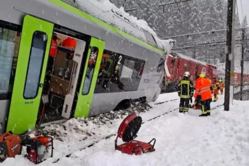 U šviejcarskim kantonie Vale ranicaj 16 lutaha pasažyrski ciahnik syšoŭ z rejek u vyniku schodu łaviny, byli paciarpiełyja. Ciapier źjaviłasia videa, jak heta było.