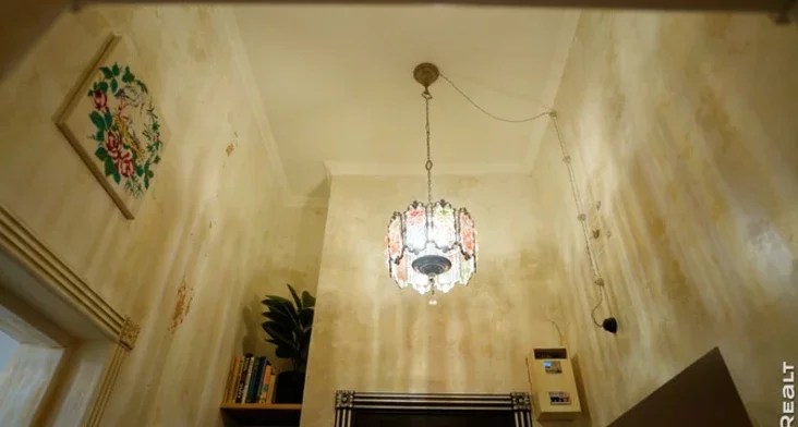 — Tak było z dekaratyŭnaj tynkoŭkaj. Ja pracavaŭ u tandemie ź dźviuma azdablalnicami. Praca karpatlivaja. Treščynki z załatoj žyłaj raspaŭźlisia pa ŭsioj płoščy. Heta, darečy, była samaja darahaja častka ramontu. Mienavita taki vid azdableńnia, jak pa mnie, upryhožvaje kvateru i padkreślivaje jaje ŭzrost. A pakolki dom z draŭlanymi pierakryćciami i ścieny tut pastajanna «hulajuć», źjaŭlajucca i naturalnyja ščyliny, jakija nie adroźniš ad stvoranych.