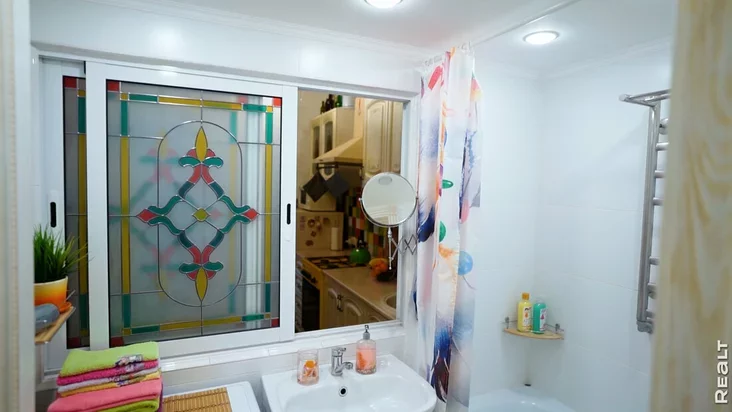 Pavialičvajuć pamier adnapakajoŭki stoli na 3,50 mietra. Dziakujučy takoj vyšyni i nievialikaj pierapłaniroŭcy, mužčyna vydzieliŭ asobnuju spalnuju zonu i vanny pakoj. Sprava ŭ tym, što žyllo pradavałasia z sanvuzłom, ale biez vanny. Znajści navat taki varyjant na rynku viekavych damoŭ — užo vialikaja ŭdača. U niekatorych niama i hetaha.