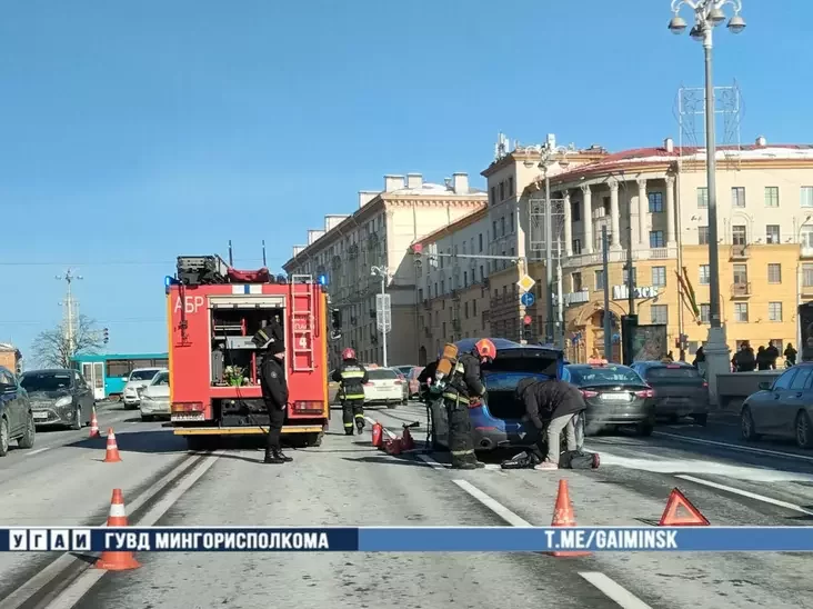 Dniom 21 lutaha kala doma №42 na praśpiekcie Niezaležnaści ŭ Minsku (heta na rahu z vulicaj Kazłova) zahareŭsia aŭtamabil BMW. 33‑hadovy kiroŭca zaŭvažyŭ dym, jaki išoŭ z-pad kapota, i adrazu vyjšaŭ z mašyny.