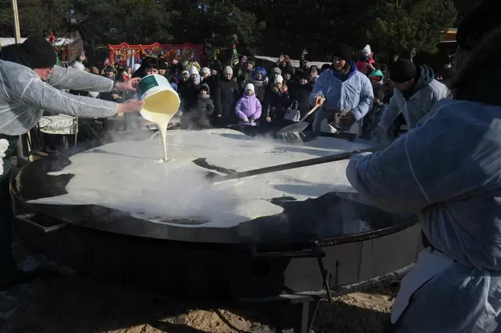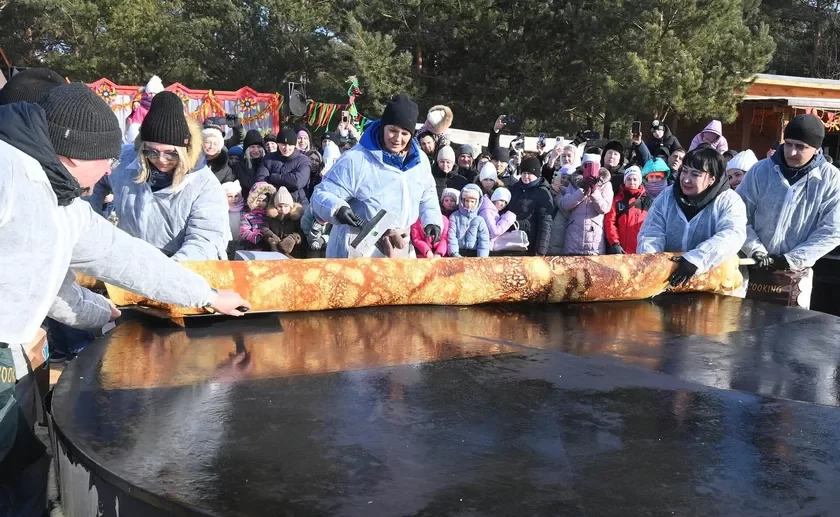 21 lutaha ŭ Parku žyvioł «Dypryz» pad Baranavičami ŭstanavili kulinarny rekord Biełarusi — tam pryhatavali samy vialiki blin u krainie. Dyjamietr hihanckaha blina skłaŭ try mietry, piša rasijskaje vydańnie Sputnik.