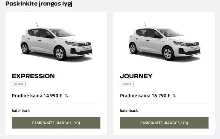 Tak, naprykład, u Litvie ceny Dacia Sandero pačynajucca z 15 tysiač jeŭra.