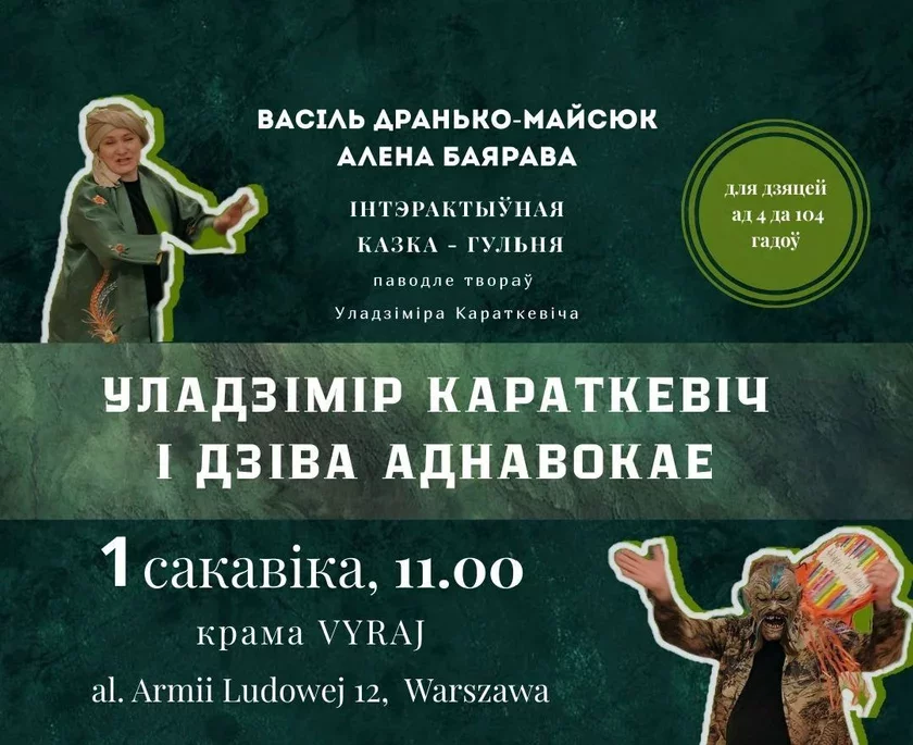 Ranicaj 1 sakavika ŭ Varšavie zładziać interaktyŭnuju kazku-hulniu dla dziaciej ad 4 da 104 hadoŭ «Uładzimir Karatkievič i dziva adnavokaje».