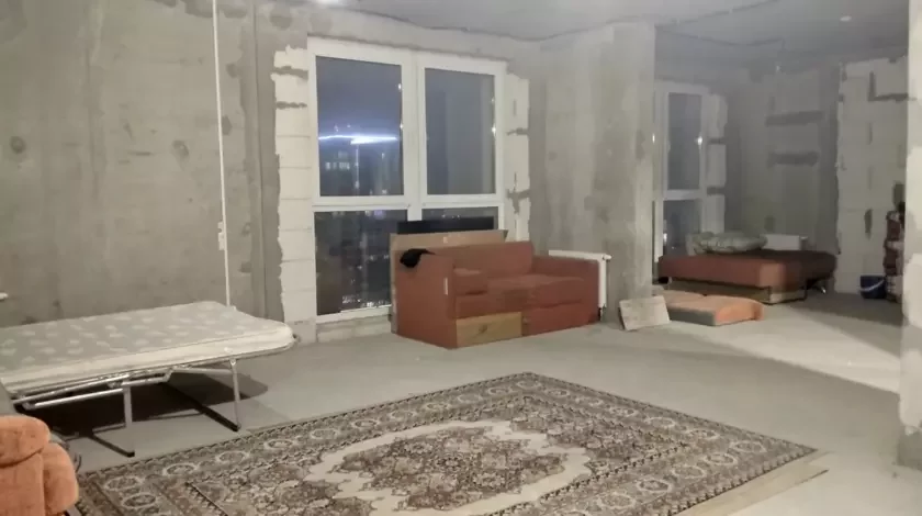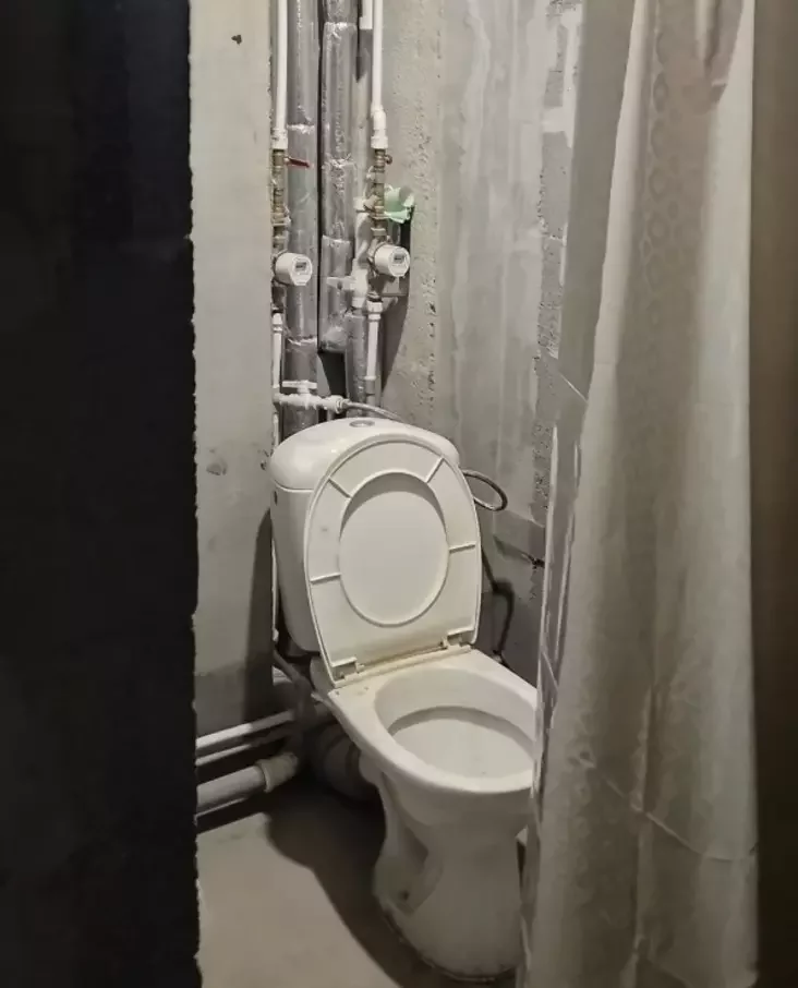 — Praviedziena vada, ustalavany tualet i dušavaja kabina, rukamyjnik, pralnaja mašyna, dźvie vialikija kanapy, nievialikaja kuchnia. Ścieny biez ramontu, na padłozie taksama niama pakryćcia.