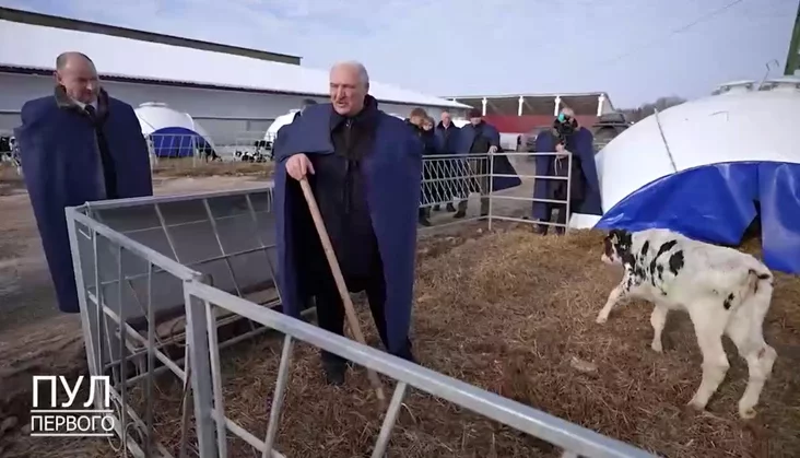 Pakul jamu pakazvali cialačy prafiłaktoryj, Łukašenka byŭ nastrojeny dobrazyčliva, adnak na dvary, dzie žyvioła raźmiaščajecca na adkrytych placoŭkach, jon vyrašyŭ kapnuć uhłybiniu.