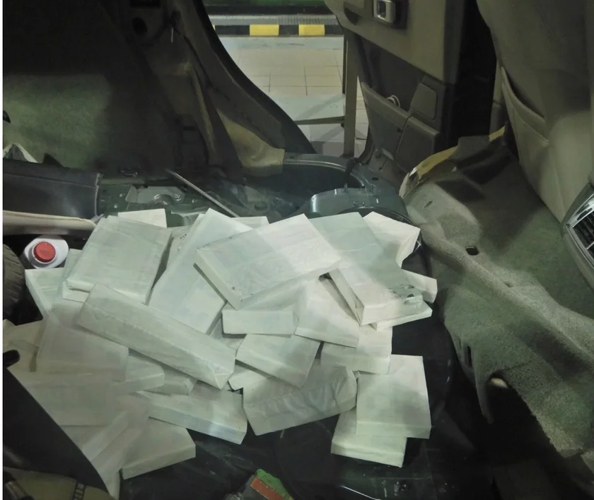 Dla pravierki mytniki zatrymali lehkavy aŭtamabil Land Rover, jakim kiravaŭ hramadzianin Biełarusi. Padčas detalovaha ahladu vyśvietliłasia, što ŭ mašynie byli zroblenyja śpiecyjalnyja kanstrukcyjnyja źmieny: pieraroblenyja centralny tunel, parohi, padoŭžnyja elemienty i padłoha. U hetych tajnikach znajšli schavanyja cyharety biez polskich akcyznych marak.