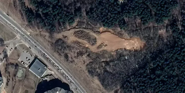Ekskavatary razraŭnoŭvali hory ziamli, vyšynia jakich miescami pieravyšała čałaviečy rost, chavajučy pad saboj karaniovyja sistemy žyvych dreŭ.