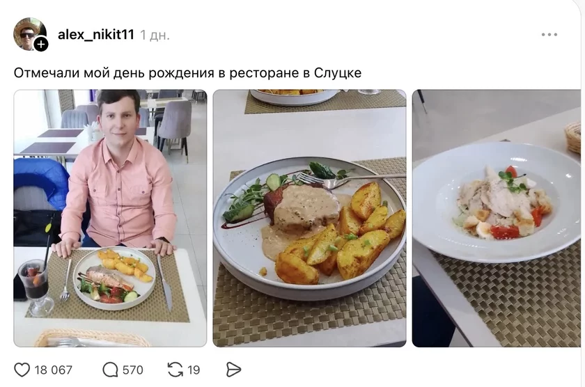 U śviecie pastanovačnych fota z čornaj ikroj i mar pra luksavaje žyćcio karystalnikaŭ Threads zavajavaŭ imianińnik sa Słucka. Jaho maksimalna prosty post pra śviatočnuju viačeru z baćkami vyklikaŭ chvalu nastalhii i zachapleńnia, nabraŭšy 18 tysiač łajkaŭ.