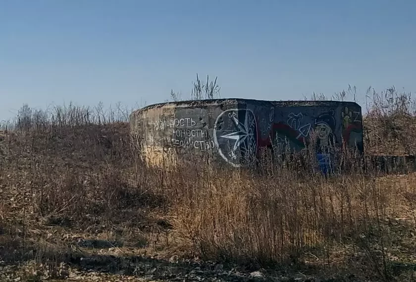 Jak bačym, nadpisy sapraŭdy zafarbavali. Adnak žadańnie pieratvaryć polskuju vajskovuju spadčynu ŭ ideałahičny biłbord pry aŭtatrasie nikudy nie źnikła. Ciapier histaryčny abjekt, pabudavany dla abarony ad Maskvy, upryhožany simvałami sučasnaha rasijskaha militaryzmu.