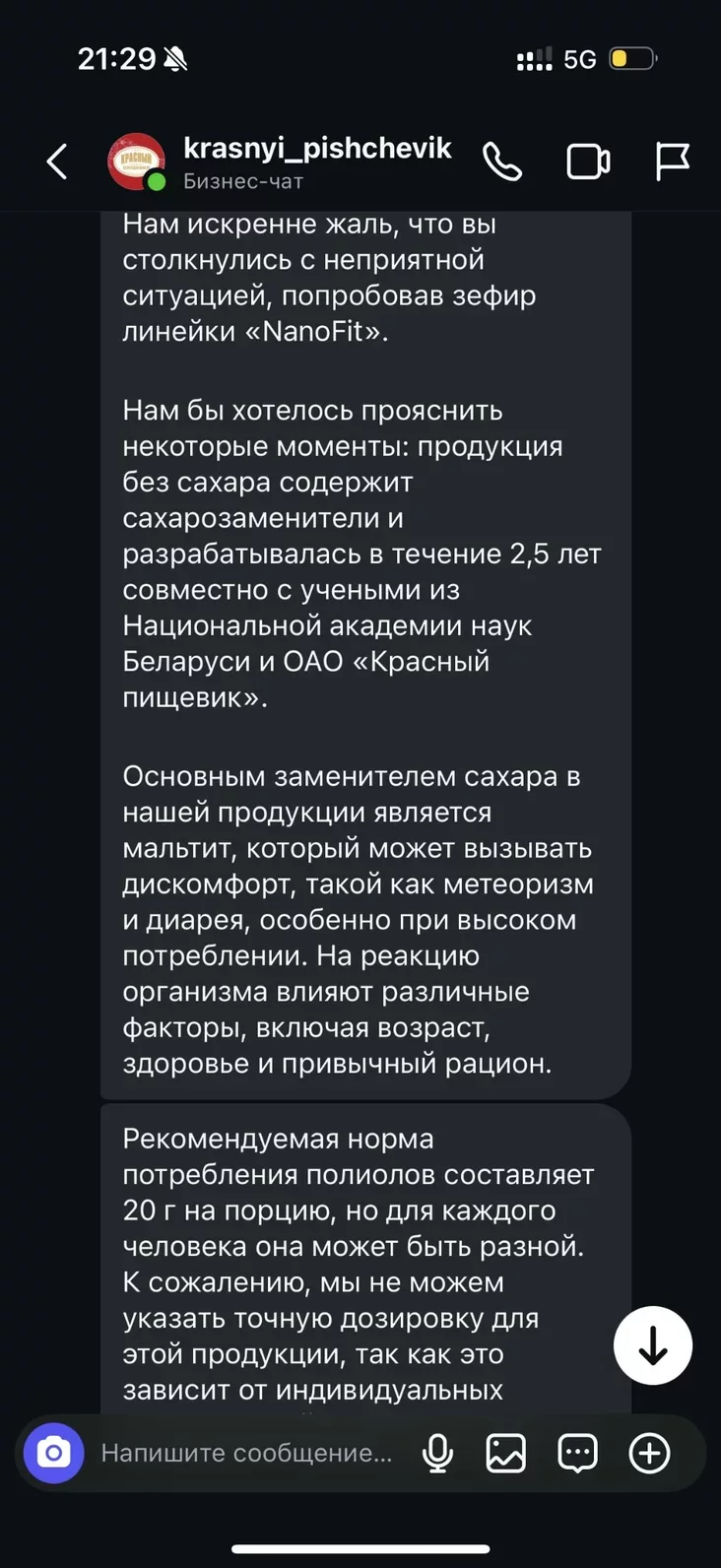 «Asnoŭnym zamieńnikam cukru ŭ našaj pradukcyi źjaŭlajecca maltyt, jaki moža vyklikać dyskamfort, taki jak mietearyzm i dyjareja, asabliva pry vysokim spažyvańni», — patłumačyli ŭ kampanii.