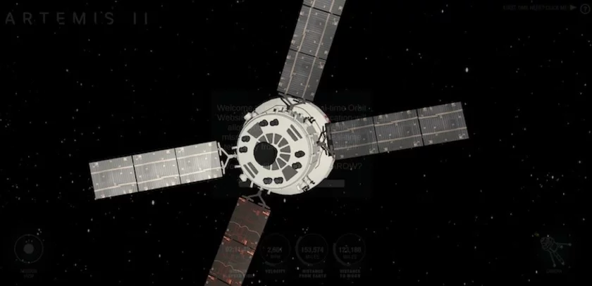 Astranaŭty misii «Artemida-2» na kaśmičnym karabli «Aryjon» pralacieli ŭžo bolš za pałovu šlachu ad Ziamli da Miesiaca.