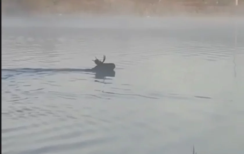 Na Lidčynie łoś prapłyŭ pa voziery kala samaj ratavalnaj stancyi VIDEA