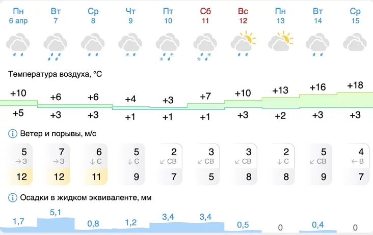 9 krasavika, u čaćvier, karotkačasovyja apadki (doždž, mokry śnieh). Na darohach hałalodzica. Nočču -4..+2°S, maksimalnaja ŭdzień +2..+8°S.