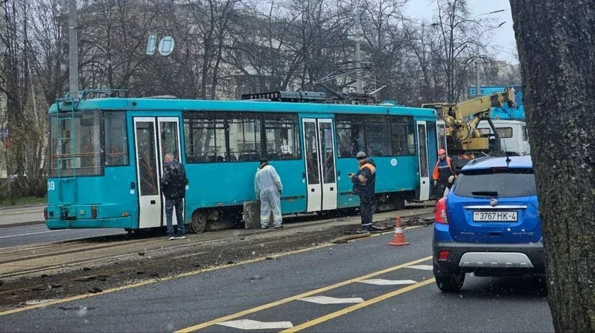 Śpiecyjalisty raźbirajucca ŭ pryčynach pałomki, a ruch tramvajaŭ na hetaj linii ŭdałosia adnavić prykładna praz hadzinu.