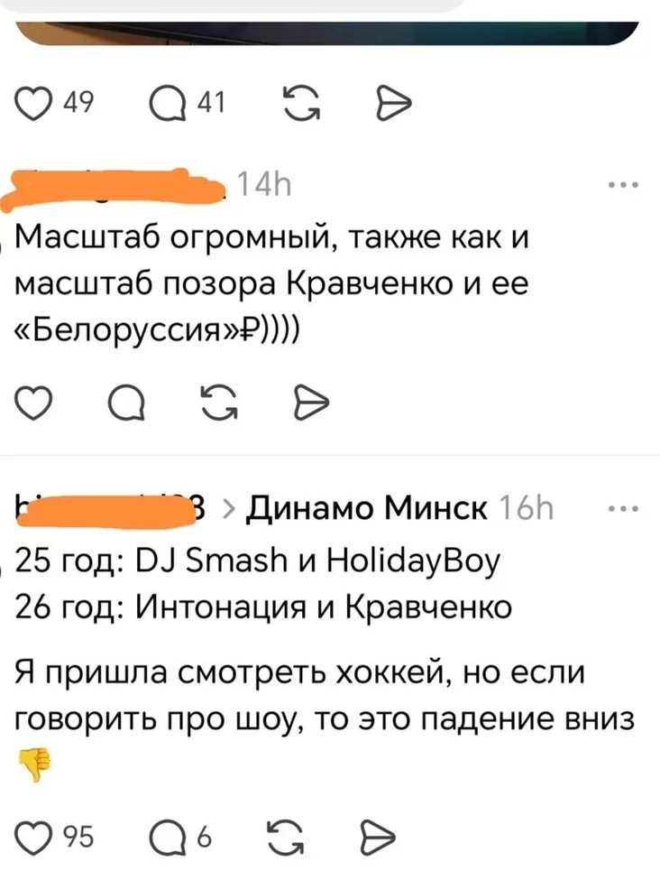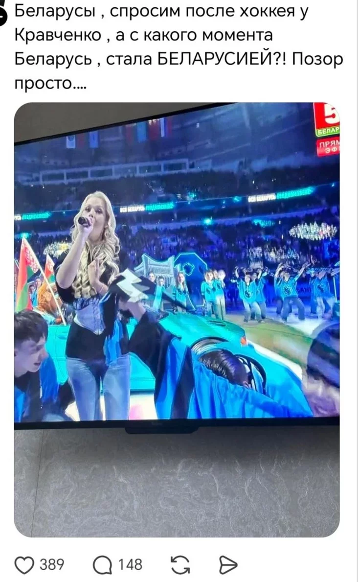 Praŭładnaja śpiavačka praśpiavała na chakiejnym matčy «Biełoruśsija» — i atrymała zasłužanuju tonu chiejtu