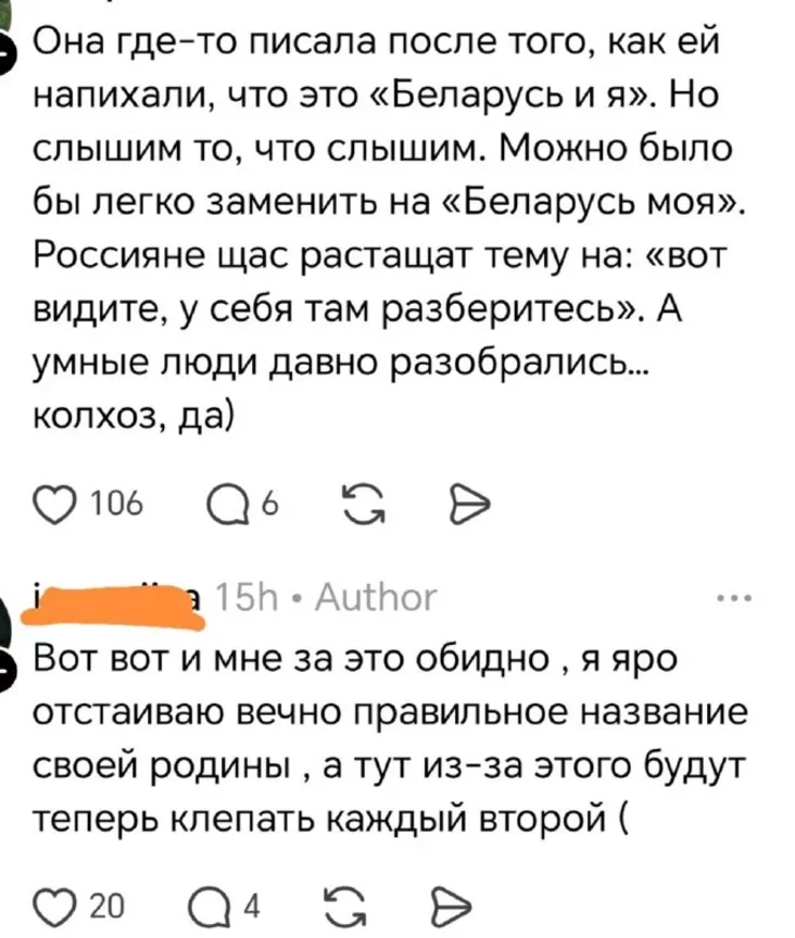 Praŭda, niekatoryja pišuć, što treba prysłuchacca i pačuć «Biełaruś i ja». Ale jany ŭ absalutnaj mienšaści, Kraŭčanka zanadta vyrazna raściahvała «ssss».