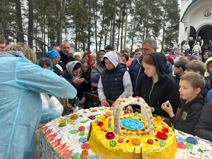 Na pravasłaŭny Vialikdzień u chramie Śviatoha Cichana ŭ Vilejcy prychadžan i haściej pačastavali niezvyčajnaj stravaj, paviedamlajuć VileykaNews.