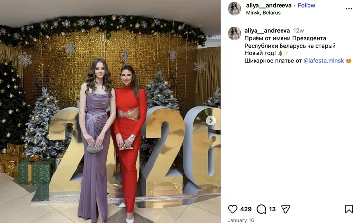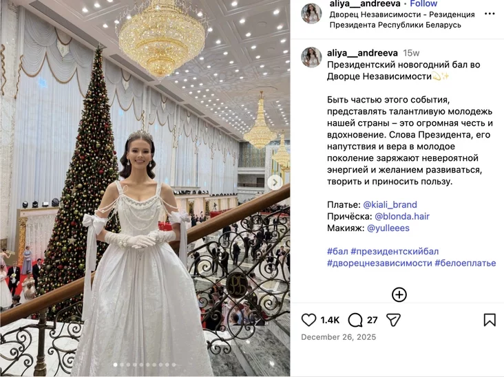 Užo ŭ śniežni Alija znoŭ apynułasia ŭ ścienach Pałaca niezaležnaści — na navahodnim bali Łukašenki.