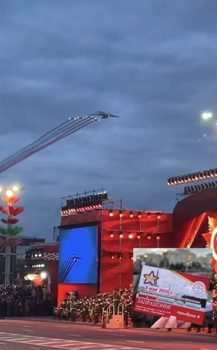 U mai chvaliłasia zaprašeńniem hladzieć parad z trybuny A. Tam ža siadzieli vierahodnaja dačka Łukašenki Kryścina Mocnaja z maci Śniažanaj.