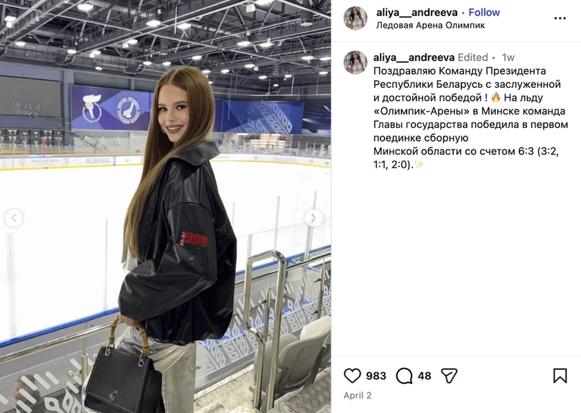 Alija Karotkaja na finalnym matčy Respublikanskaj chakiejnaj lihi, krasavik — 2026. Krynica: instahram-akaŭnt Alii Karotkaj