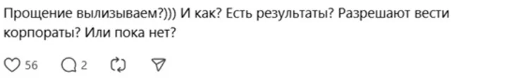 «Vylizvajem sabie prabačeńnie?))) I jak? Jość vyniki? Dazvalajuć vieści karparatyvy? Ci pakul nie?» — iranizujuć u kamientarach.