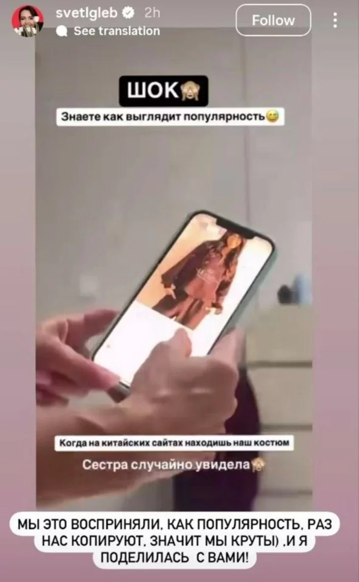 I ŭžo paśpieli trapić u cikavuju situacyju. Na adnym z kitajskich sajtaŭ znajšoŭsia taki samy kaścium, jak u Le Chik. Śviatłana Hleb zajaviła, što heta kitajcy skapiravali ich dyzajn.