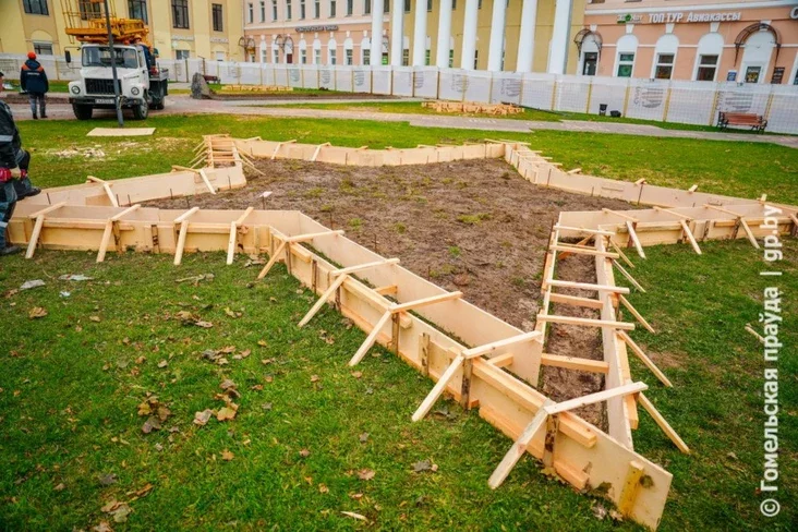 Homielskija ŭłady dziela ŭstanoŭki pomnika Rakasoŭskamu vysiekli ceły skvier u centry horada