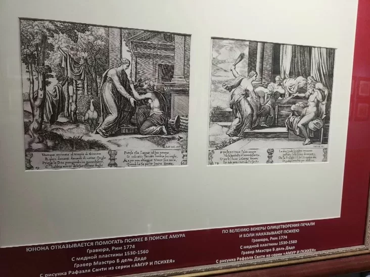 Jašče pry žyćci majstra jaho sučaśniki ŭ 1530—1560 hadach stvarali hraviury da jahonych ilustracyj navieły Apuleja «Amur i Psichieja». 30 adbitkaŭ z hetych hraviur, stvoranych na miednych płaścinach u 1774 hodzie, pradstaŭlenyja na vystavie ŭ Viciebsku.