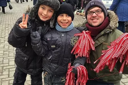 Na Kamaroŭcy milicyjanty «pierastrachavalisia» i zatrymali čatyroch čałaviek za razdaču stužak ź biełaruskim arnamientam FOTA, VIDEA2525